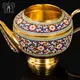 Изумительное мастерство, изящество и грация – все это великолепный серебряный чайный сервиз «Графский» от ювелиров Кубачи. Посмотрите на эту красоту, которая сверкает богатством цветной горячей эмали – будто яркий весенний луг распустился на каждом из 21 предметов! В обрамлении солнечной позолоты разноцветье узора выглядит радостным и живым. Потрясающий и в то же время практичный дизайн, который сделает чаепитие истинно графской чайной церемонией.